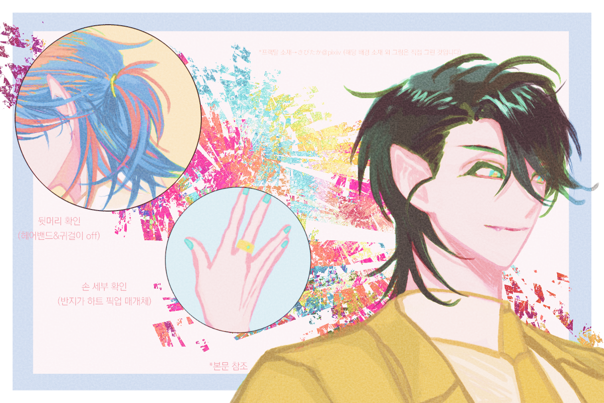 오른손 중지에 하고 있는 반지가 하트 픽업 (*위쪽 전신 부분 이미지 참조)을 위한 매개체에 해당한다.